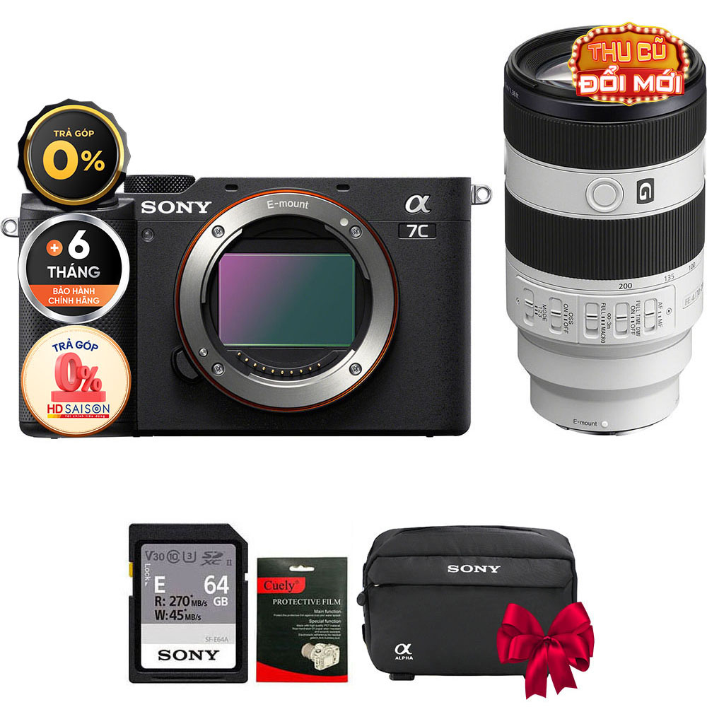 Nhỏ gọn và đầy khả năng, Sony A7C hòa trộn chất lượng và các ưu điểm của cảm biến full frame với thiết kế thân máy đặc biệt gọn gàng, linh động. Trang bị cảm biến CMOS BSI Exmor R 24.2MP, máy ảnh A7C cung cấp các tính năng kết hợp để phù hợp với cả chụp ảnh tĩnh và quay phim bên cạnh kiểu dáng phù hợp di chuyển cả ngày, hàng ngày.
