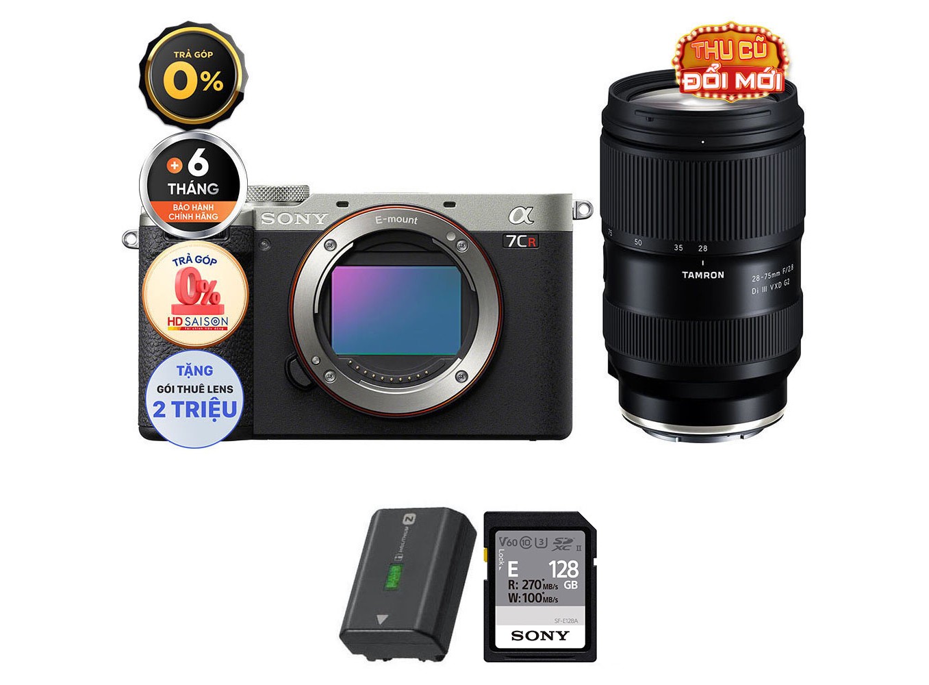 Sony A7CR (Chính hãng) (Kèm Lens Tamron 28-75mm f/2.8 G2, Silver, Pin + Thẻ Nhớ 128GB)