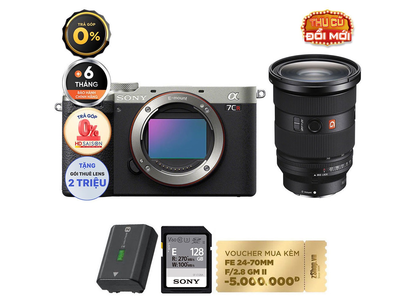 Sony A7CR (Chính hãng) (Kèm Lens Sony FE 24-70mm f/2.8 GM II, Silver, Pin + Thẻ Nhớ 128GB)