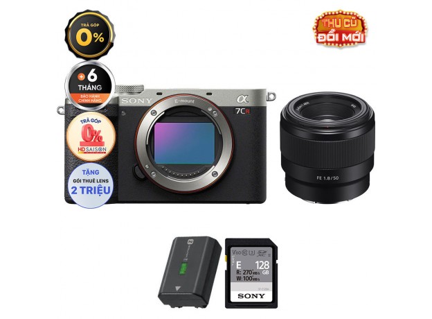 Sony A7CR (Chính hãng) (Kèm Lens Sony FE 50mm f/1.8, Silver, Pin + Thẻ Nhớ 128GB)