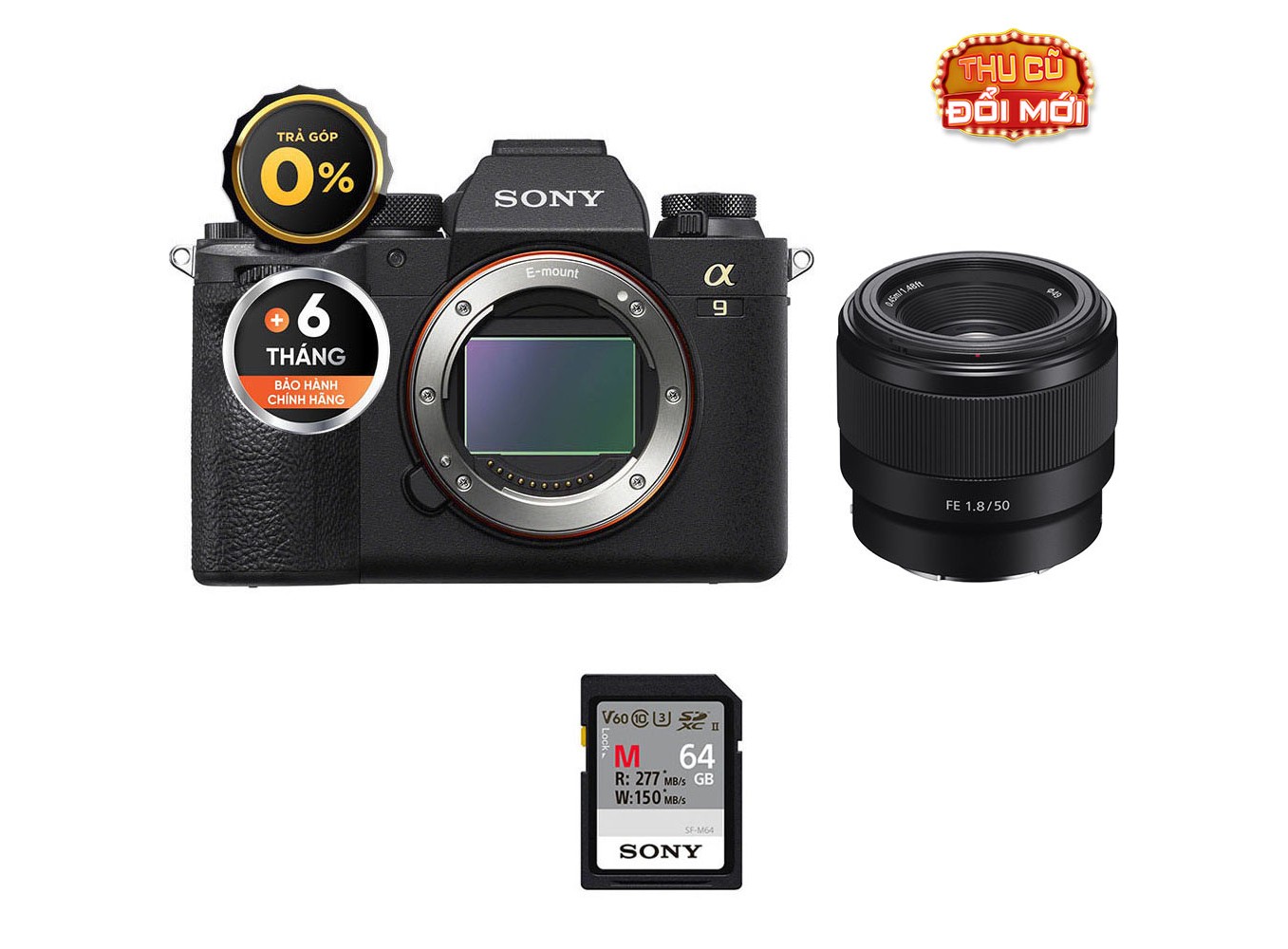 Sony A9 II + Sony FE 50mm f/1.8 (Chính hãng) (Thẻ Nhớ 64GB)