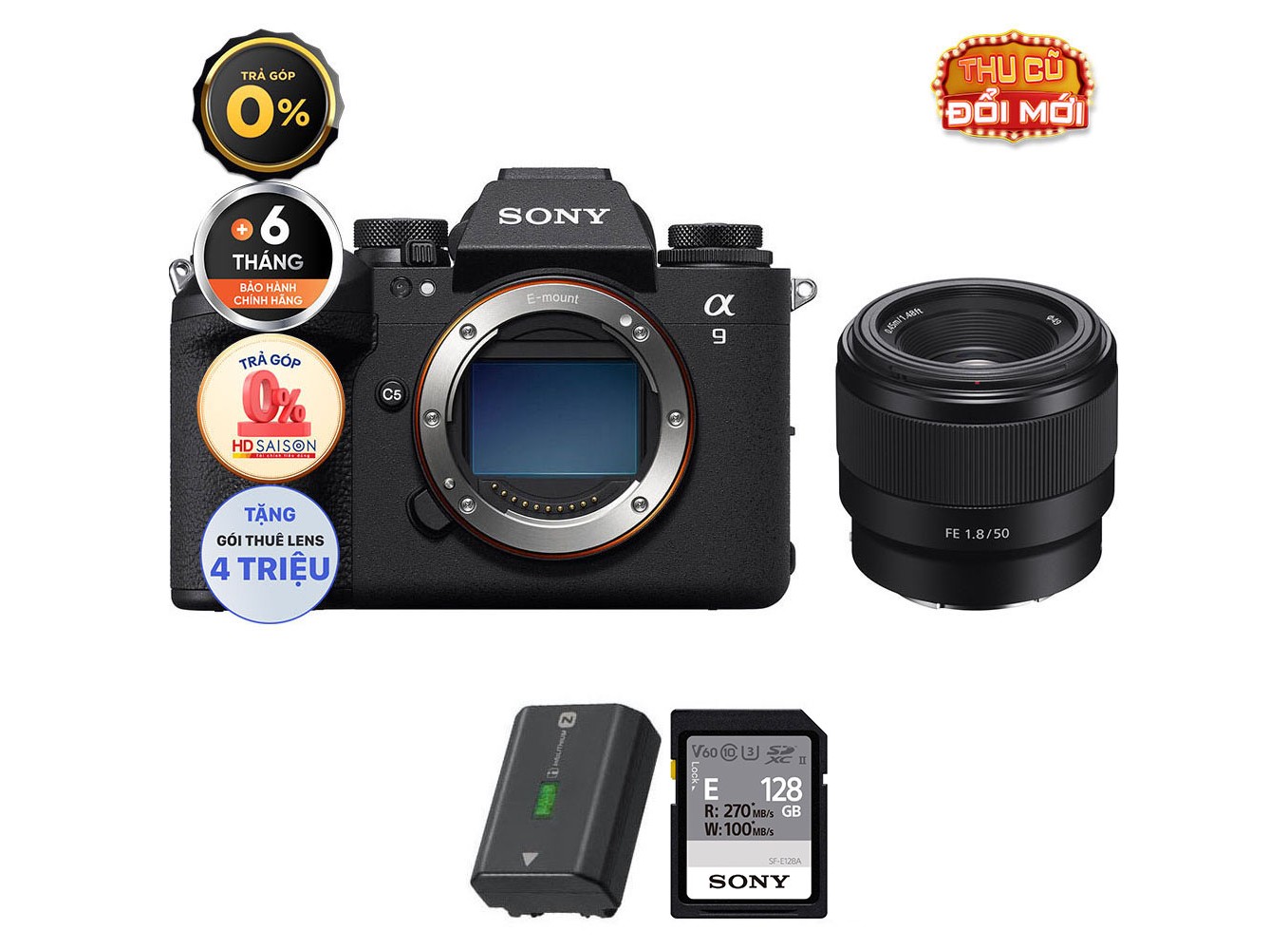 Sony A9 III + Sony FE 50mm f/1.8 (Chính hãng) (Pin + Thẻ Nhớ 128GB)