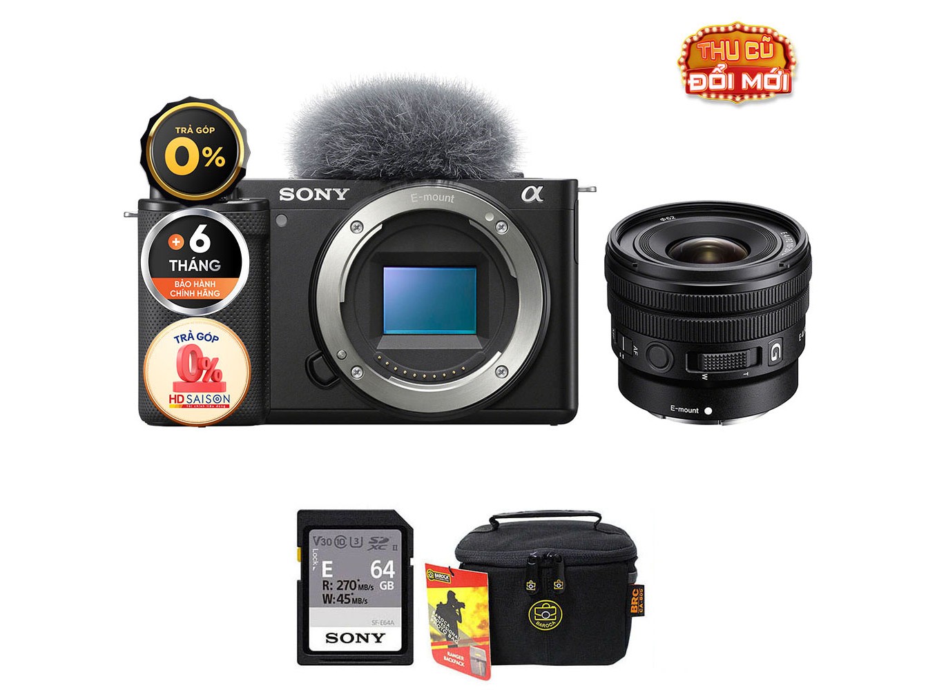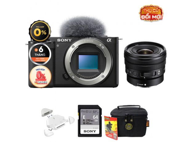 Sony ZV-E10 + E 10-20mm f/4 PZ G (Chính hãng) (Body + Sony E PZ 10-20mm f/4, Đầu Đọc Thẻ + Thẻ Nhớ 64GB + Túi Máy Ảnh)