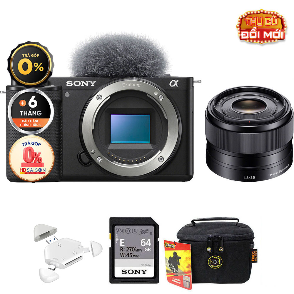 Sony ZV-E10 + E 35mm f/1.8 (Chính hãng) (Body + Sony E 35mm f/1.8, Đầu Đọc Thẻ + Thẻ Nhớ 64GB + Túi Máy Ảnh)