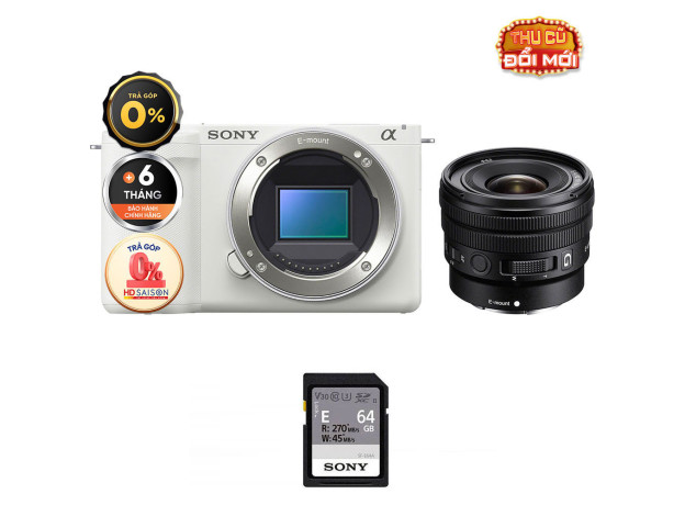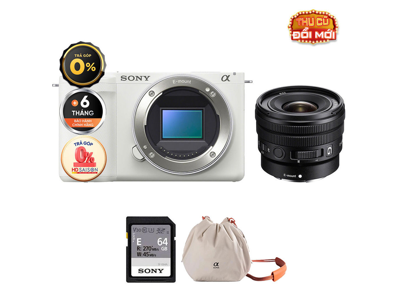 Sony ZV-E10 II + E 10-20mm f/4 (Chính hãng) (Body + Sony E PZ 10-20mm f/4, White, Thẻ Nhớ 64GB + Túi Máy Ảnh)