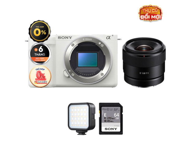 Sony ZV-E10 II + E 11mm f/1.8 (Chính hãng) (Body + Sony E 11mm f/1.8, White, Thẻ Nhớ 64GB + Đèn LED)