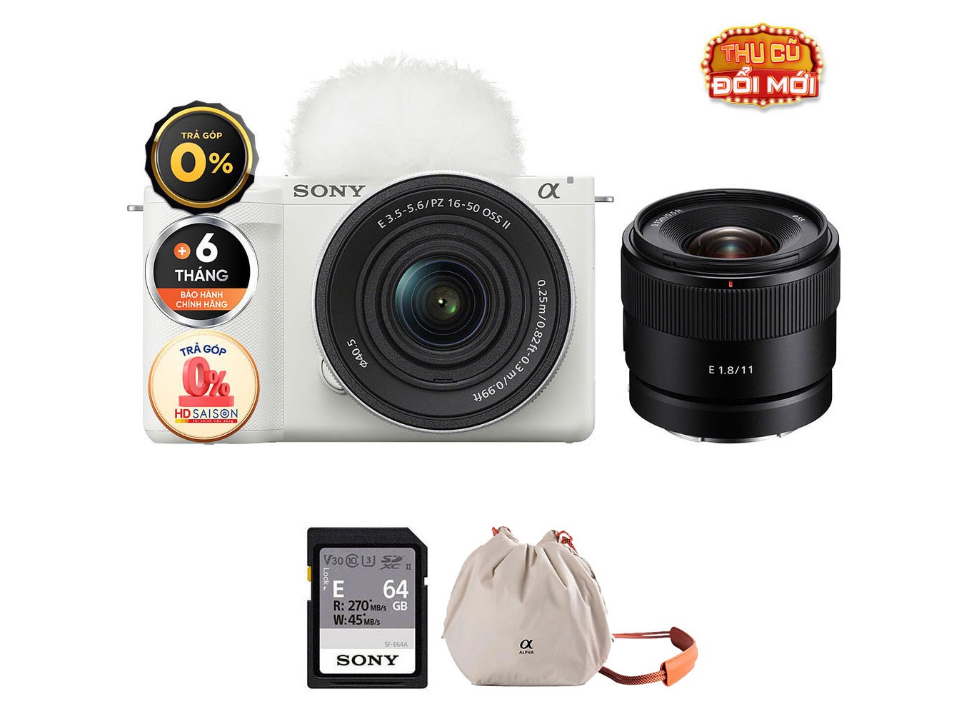 Sony ZV-E10 II + E 11mm f/1.8 (Chính hãng) (Kit 16-50mm II + Sony E 11mm f/1.8, White, Thẻ Nhớ 64GB + Túi Máy Ảnh)