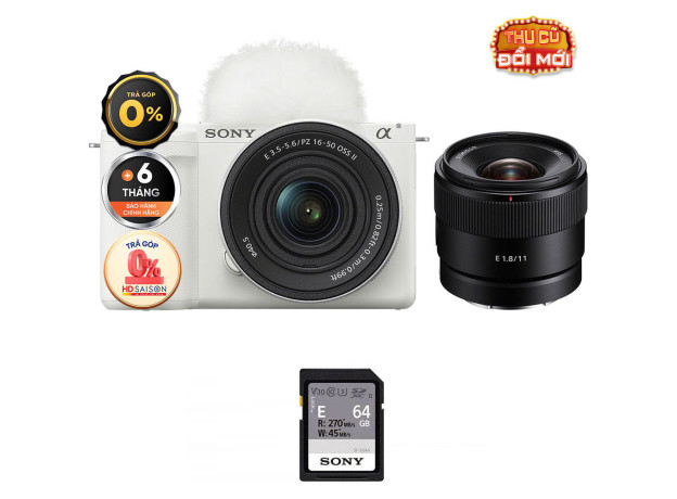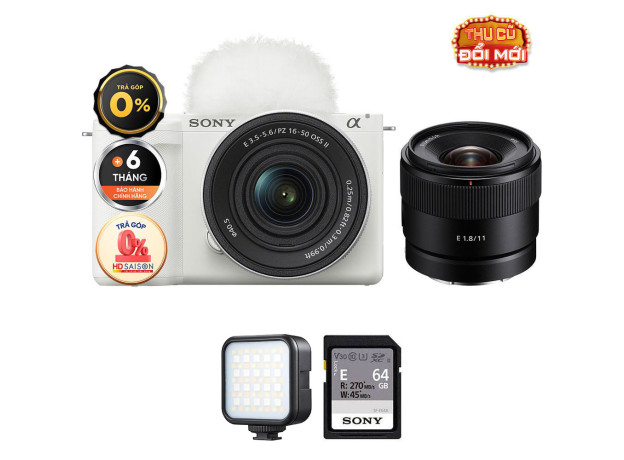 Sony ZV-E10 II + E 11mm f/1.8 (Chính hãng) (Kit 16-50mm II + Sony E 11mm f/1.8, White, Thẻ Nhớ 64GB + Đèn LED)