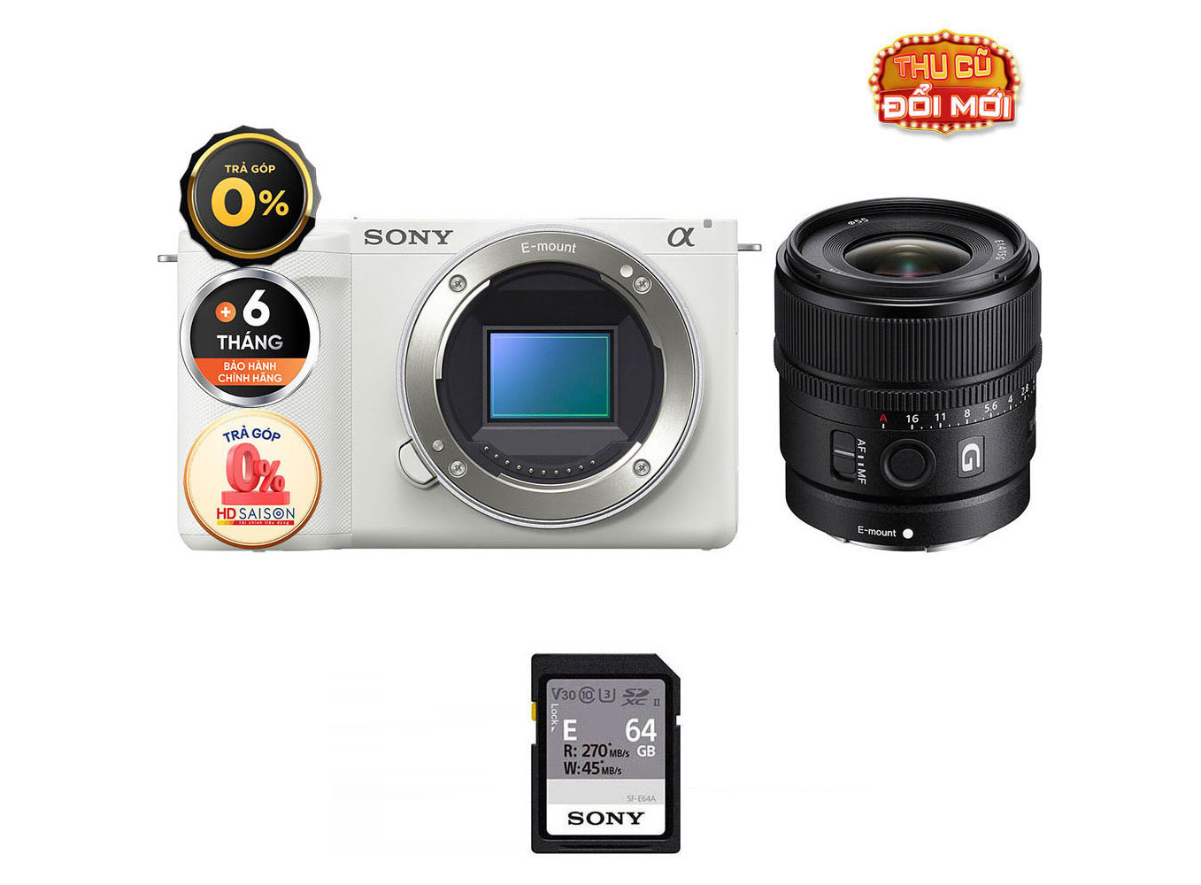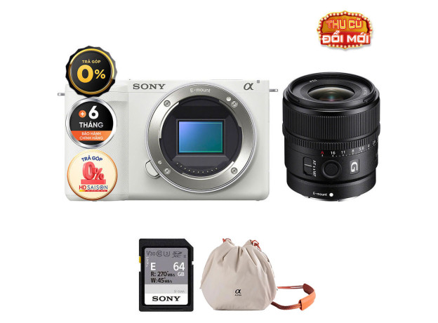 Sony ZV-E10 II + E 15mm f/1.4 (Chính hãng) (Body + Sony E 15mm f/1.4, White, Thẻ Nhớ 64GB + Túi Máy Ảnh)