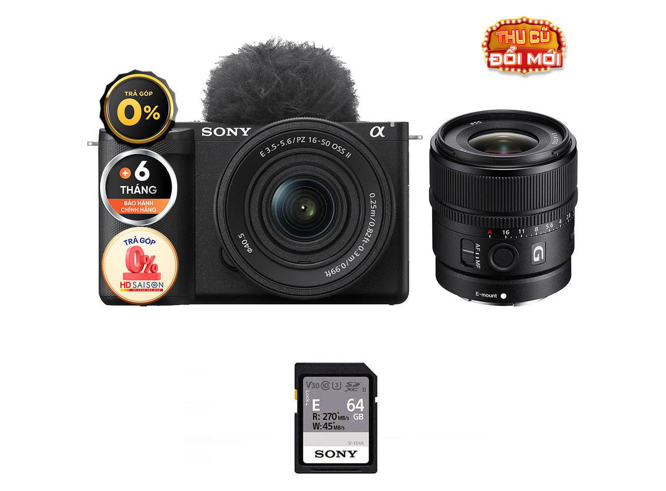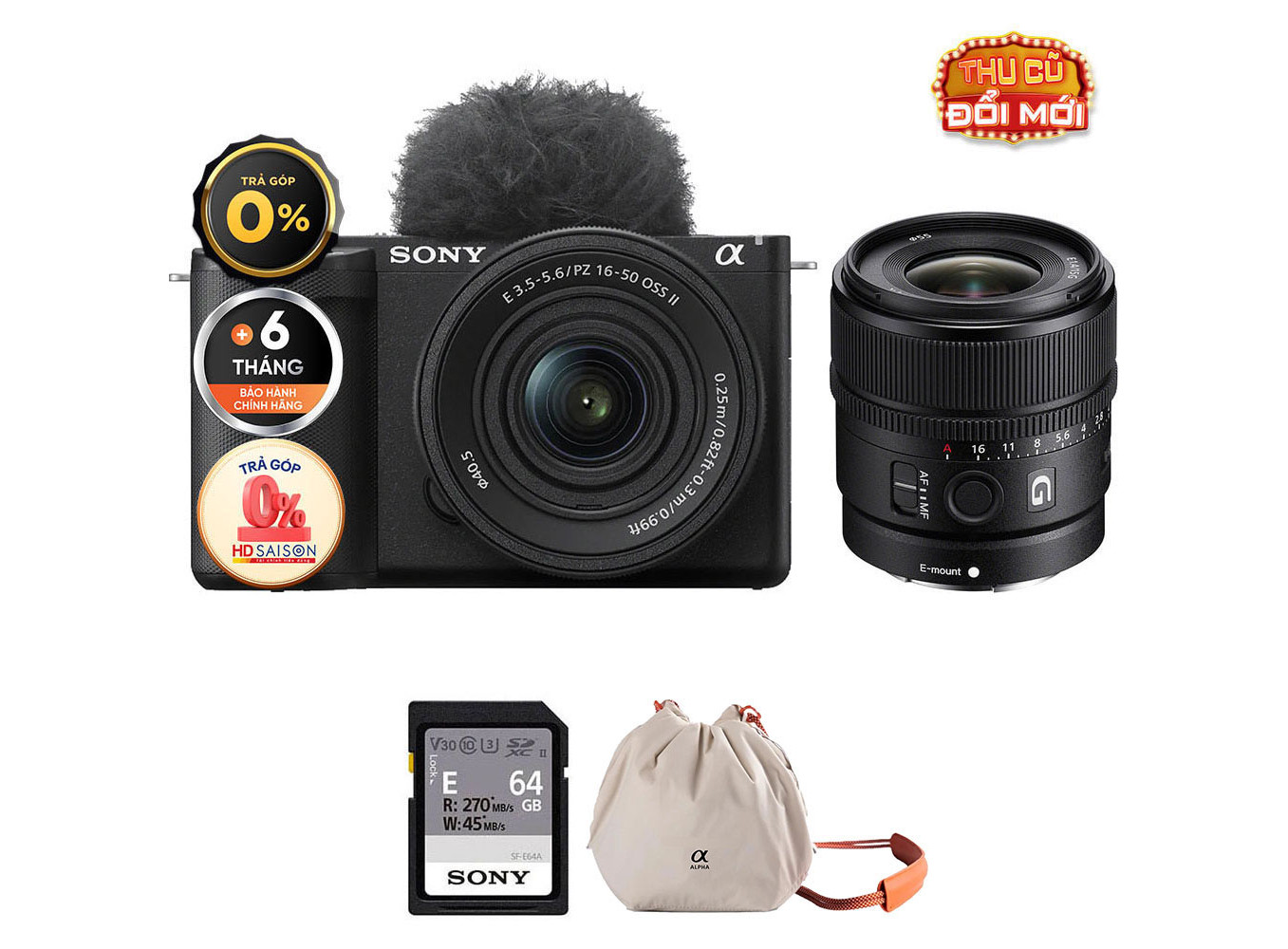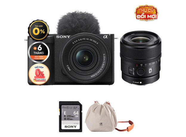 Sony ZV-E10 II + E 15mm f/1.4 (Chính hãng) (Kit 16-50mm II + Sony E 15mm f/1.4, Black, Thẻ Nhớ 64GB + Túi Máy Ảnh)