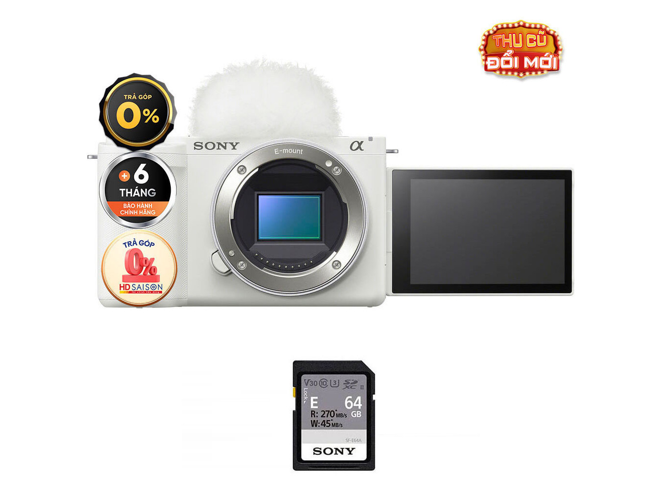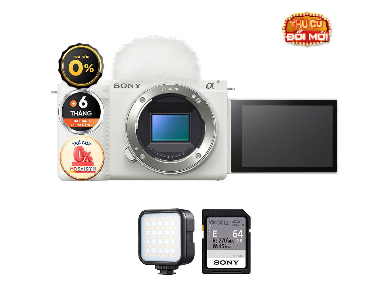 Sony ZV-E10 II (Chính hãng) (Body Only, White, Thẻ Nhớ 64GB + Đèn LED)
