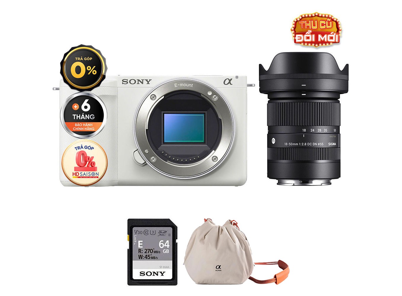 Sony ZV-E10 II (Chính hãng) (Kèm Lens Sigma 18-50mm f/2.8, White, Thẻ Nhớ 64GB + Túi Máy Ảnh)