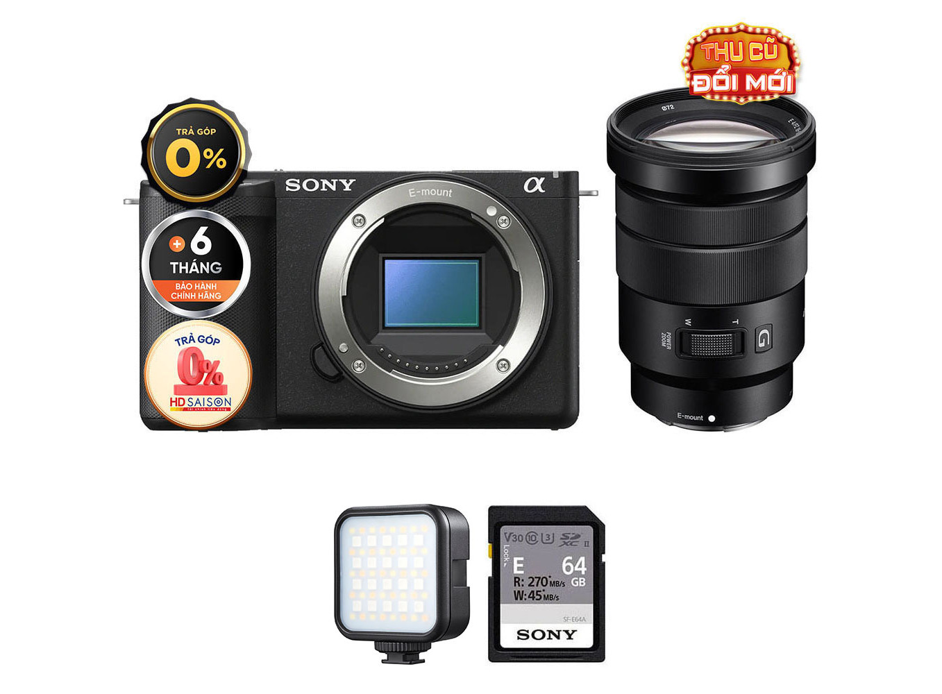 Sony ZV-E10 II (Chính hãng) (Kèm Lens Sony E 18-105mm f/4, Black, Thẻ Nhớ 64GB + Đèn LED)