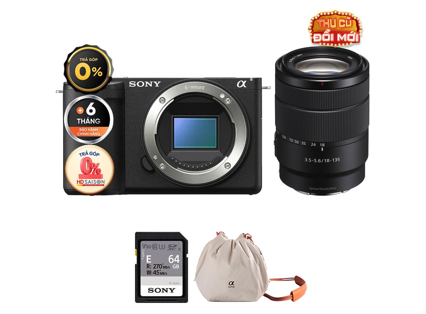Sony ZV-E10 II (Chính hãng) (Kèm Lens Sony E 18-135mm f/3.5-5.6, Black, Thẻ Nhớ 64GB + Túi Máy Ảnh)