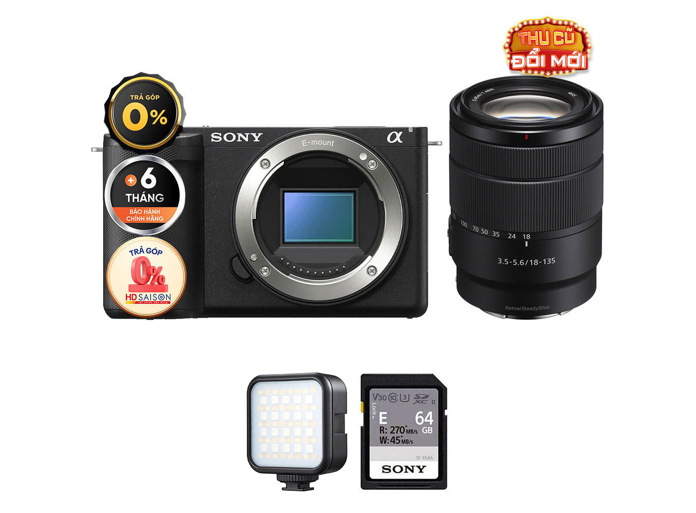 Sony ZV-E10 II (Chính hãng) (Kèm Lens Sony E 18-135mm f/3.5-5.6, Black, Thẻ Nhớ 64GB + Đèn LED)