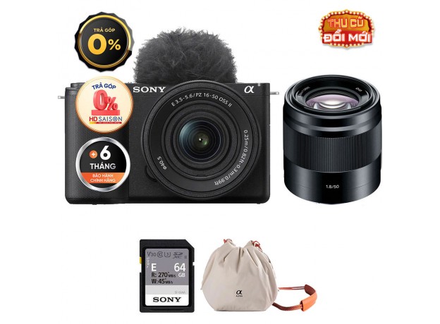 Sony ZV-E10 II (Chính hãng) (Kèm Kit Lens 16-50mm II + Sony E 50mm f/1.8 OSS, Black, Thẻ Nhớ 64GB + Túi Máy Ảnh)
