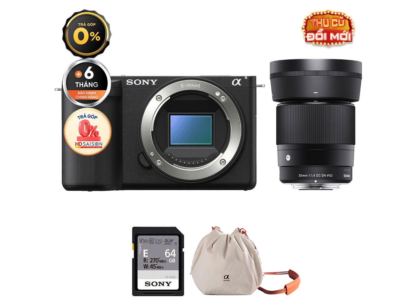 Sony ZV-E10 II (Chính hãng) (Kèm Lens Sigma 30mm f/1.4, Black, Thẻ Nhớ 64GB + Túi Máy Ảnh)