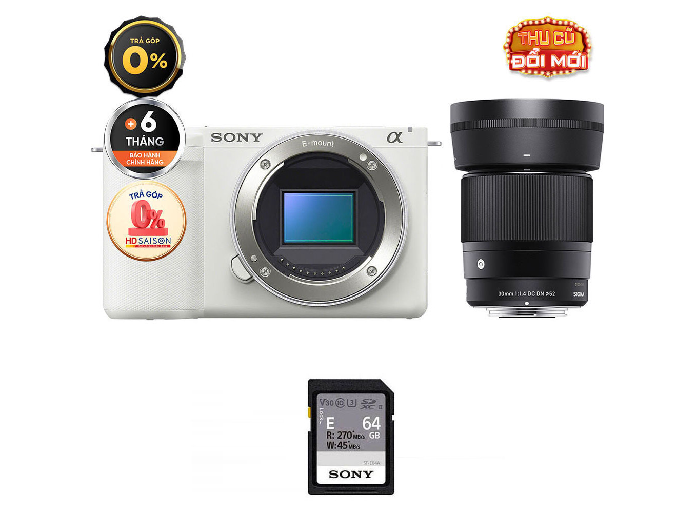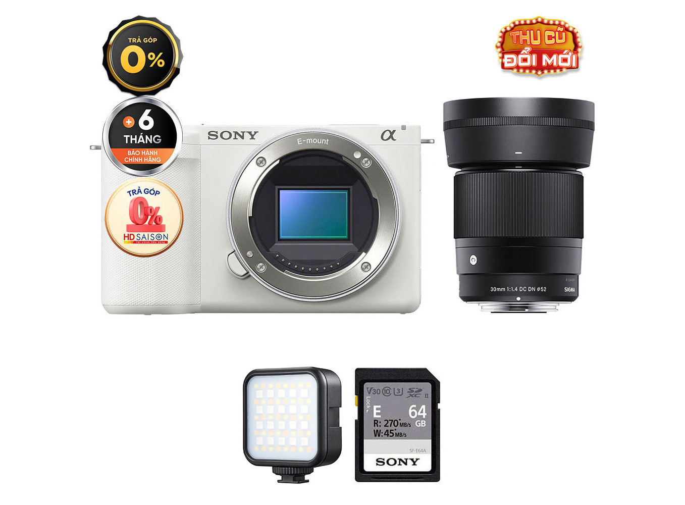 Sony ZV-E10 II (Chính hãng) (Kèm Lens Sigma 30mm f/1.4, White, Thẻ Nhớ 64GB + Đèn LED)