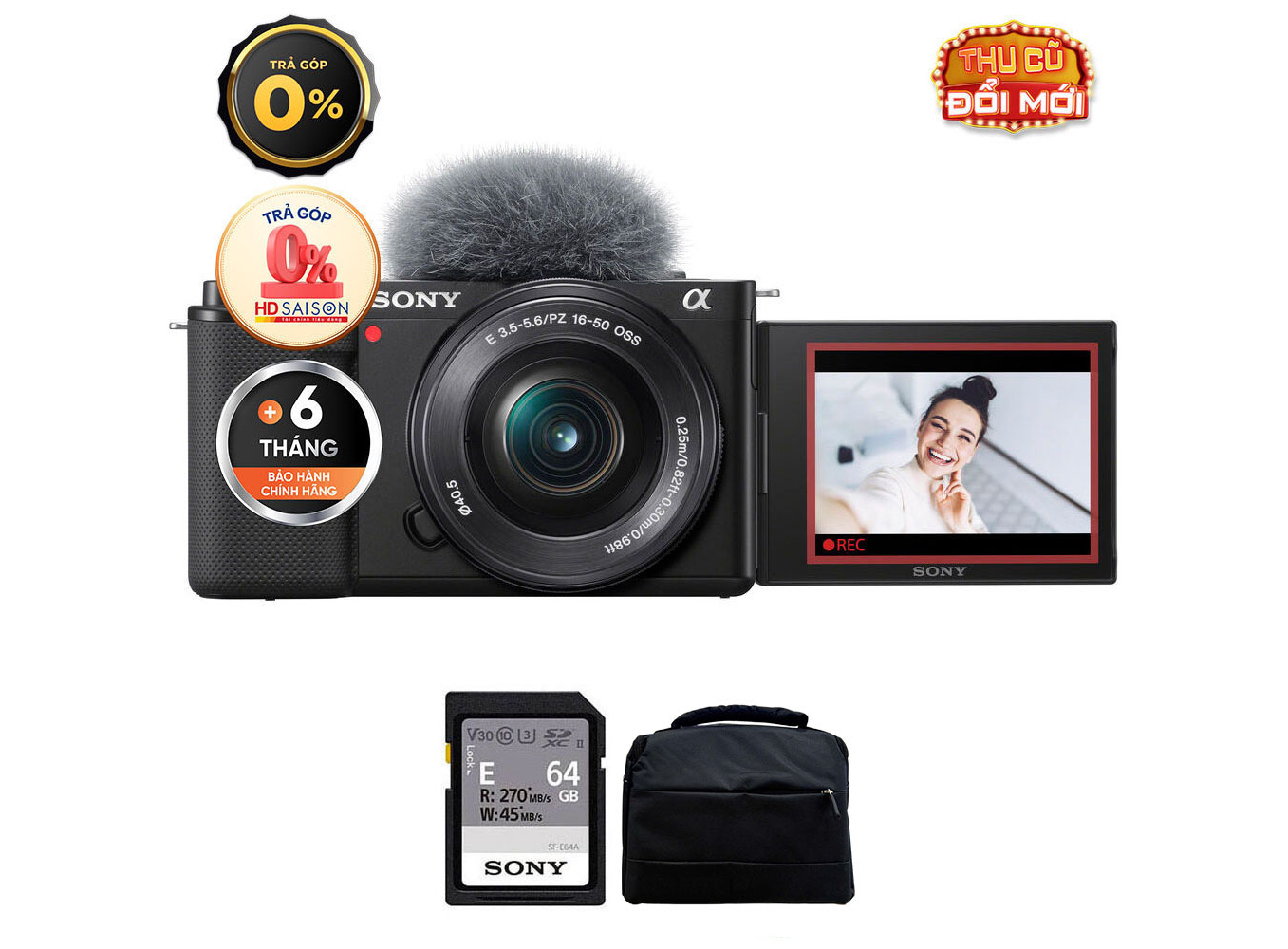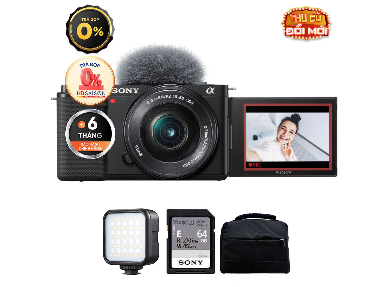 Sony ZV-E10 (Chính hãng) (Kèm Kit Lens 16-50mm, Black, Thẻ Nhớ 64GB + Túi Máy Ảnh + Đèn LED)