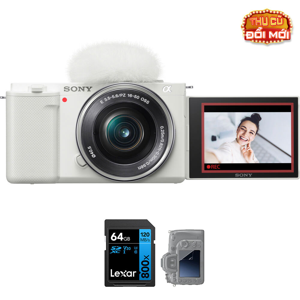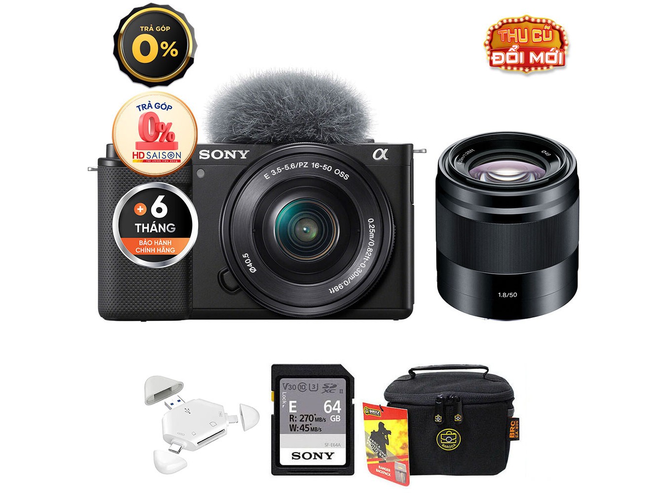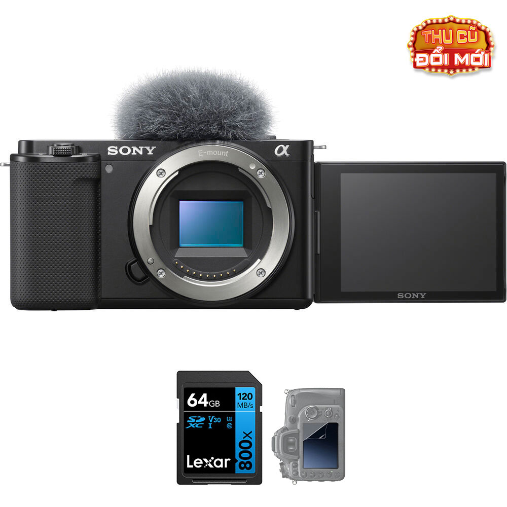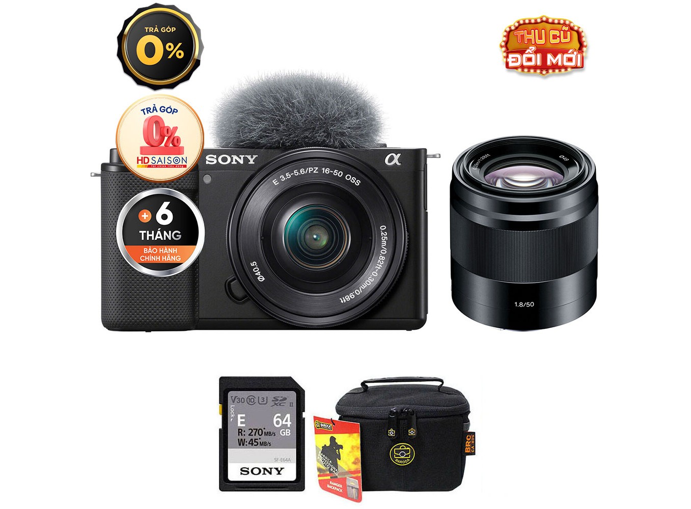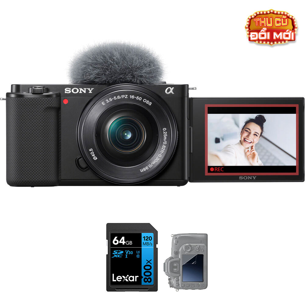 Sony ZV-E10 (Chính hãng) (Kèm Kit Lens 16-50mm + Sony E 50mm f/1.8 OSS, Black, Đầu Đọc Thẻ + Thẻ Nhớ 64GB + Túi Máy Ảnh)
