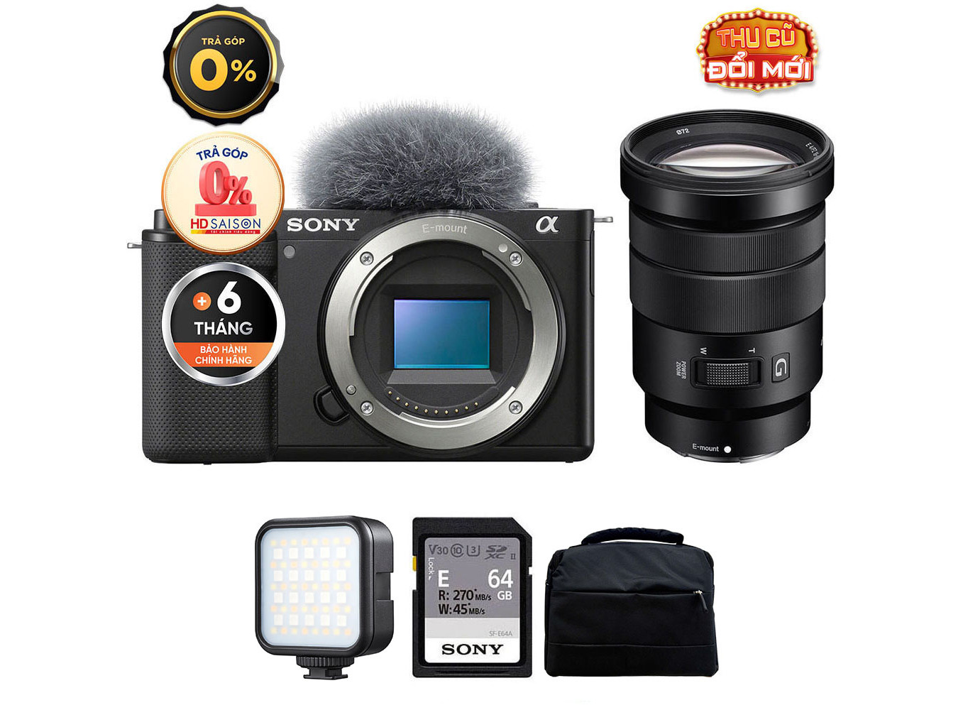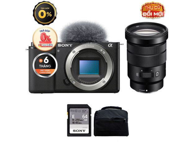 Sony ZV-E10 (Chính hãng) (Kèm Lens Sony E 18-105mm f/4, Black, Thẻ Nhớ 64GB + Túi Máy Ảnh + Đèn LED)
