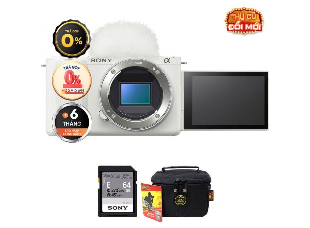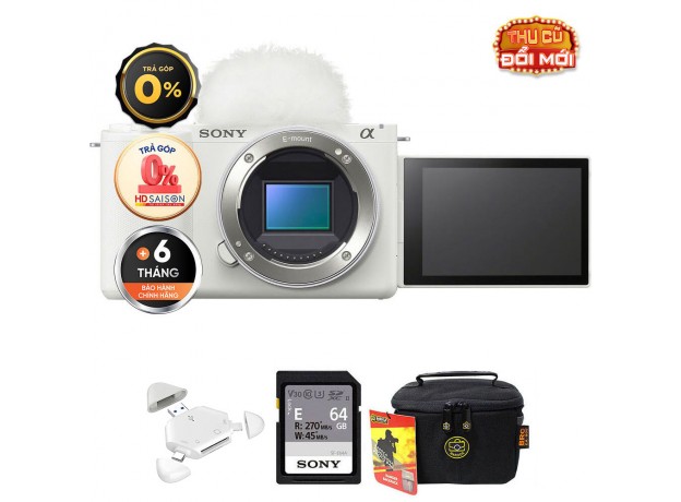 Sony ZV-E10 (Chính hãng) (Body Only, White, Đầu Đọc Thẻ + Thẻ Nhớ 64GB + Túi Máy Ảnh)