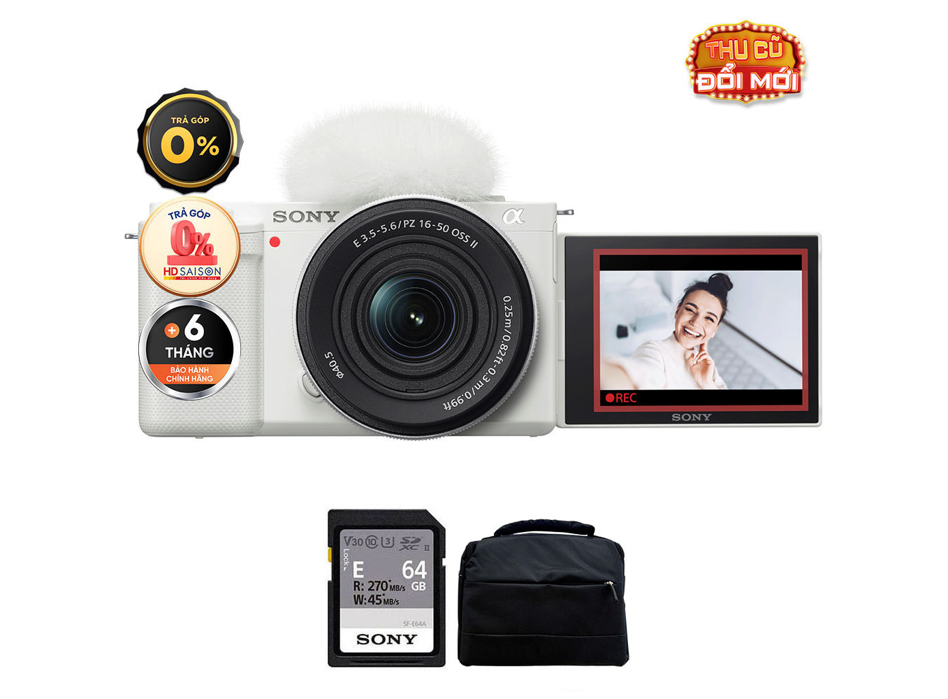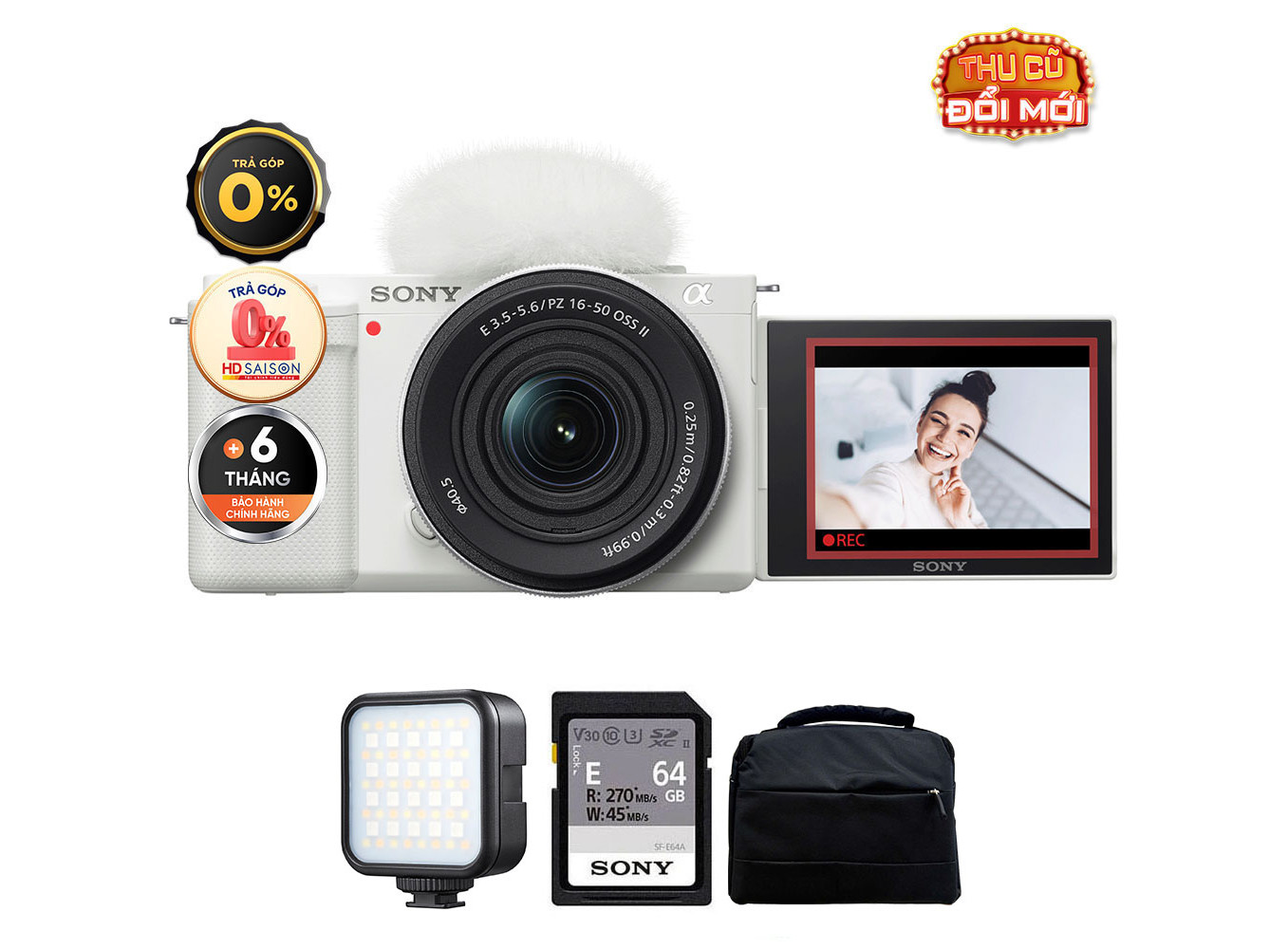 Sony ZV-E10 (Chính hãng) (Kèm Kit Lens 16-50mm II, White, Thẻ Nhớ 64GB + Túi Máy Ảnh + Đèn LED)