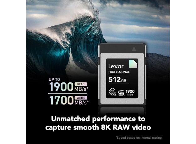 Thẻ nhớ CFexpress Type B Lexar 512GB 1900MB/s thuộc dòng thẻ nhớ Professional CFexpress Type B Diamond Series của Lexar. Được thiết kế để đáp ứng nhu cầu của các nhà làm phim chuyên nghiệp và người sáng tạo nội dung. Thẻ này cung cấp tốc độ đọc lên đến 1900MB/s, tốc độ ghi lên đến 1700MB/s và tốc độ ghi liên tục tối thiểu không giảm xuống dưới 1600MB/s, tất cả đều cho phép bạn ghi lại video Raw 8K, 6K, 4K và hơn thế nữa mượt mà. Ngoài ra, thẻ còn tuân thủ tiêu chuẩn video VGP-400, đảm bảo tốc độ ghi ít nhất là 400MB/s.