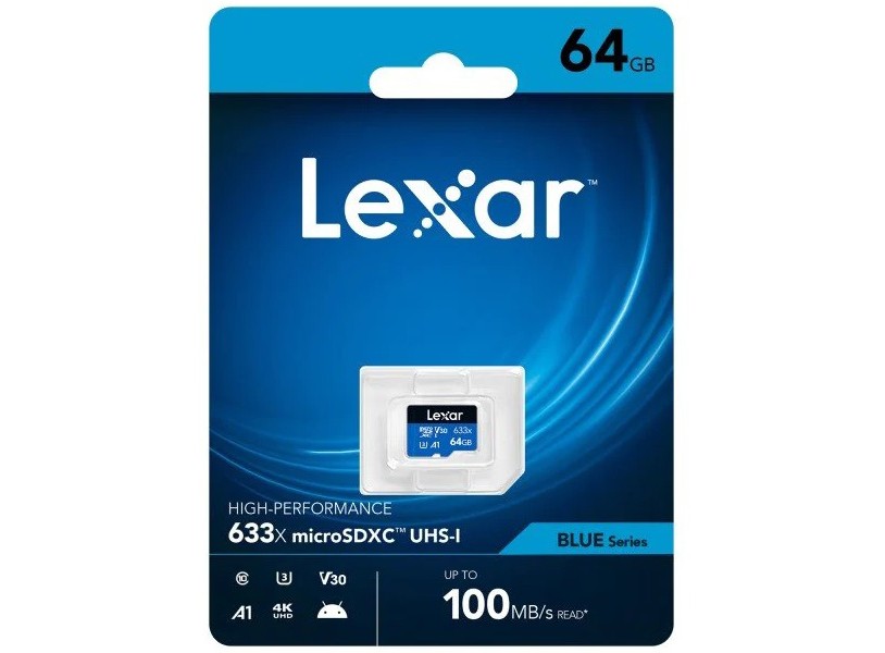 Thẻ nhớ microSDXC Lexar 64GB 100MB/s UHS-I Blue Series thuộc dòng thẻ nhớ microSDHC/SDXC UHS-I 633x Blue Series hiệu suất cao của Lexar, được thiết kế cho điện thoại thông minh, máy tính bảng hoặc máy quay hành động của bạn. Dòng thẻ nhớ Lexar 633x microSDHC/microSDXC UHS-I BLUE Series cho phép bạn nhanh chóng ghi, phát lại và truyền video Full HD 1080p, 3D và 4K UHD cũng như phim, ảnh và bài hát chất lượng cao nhất. Thẻ nhớ Class 10 tận dụng công nghệ UHS-I để mang lại hiệu suất tốc độ cao, lên đến 100MB/s.