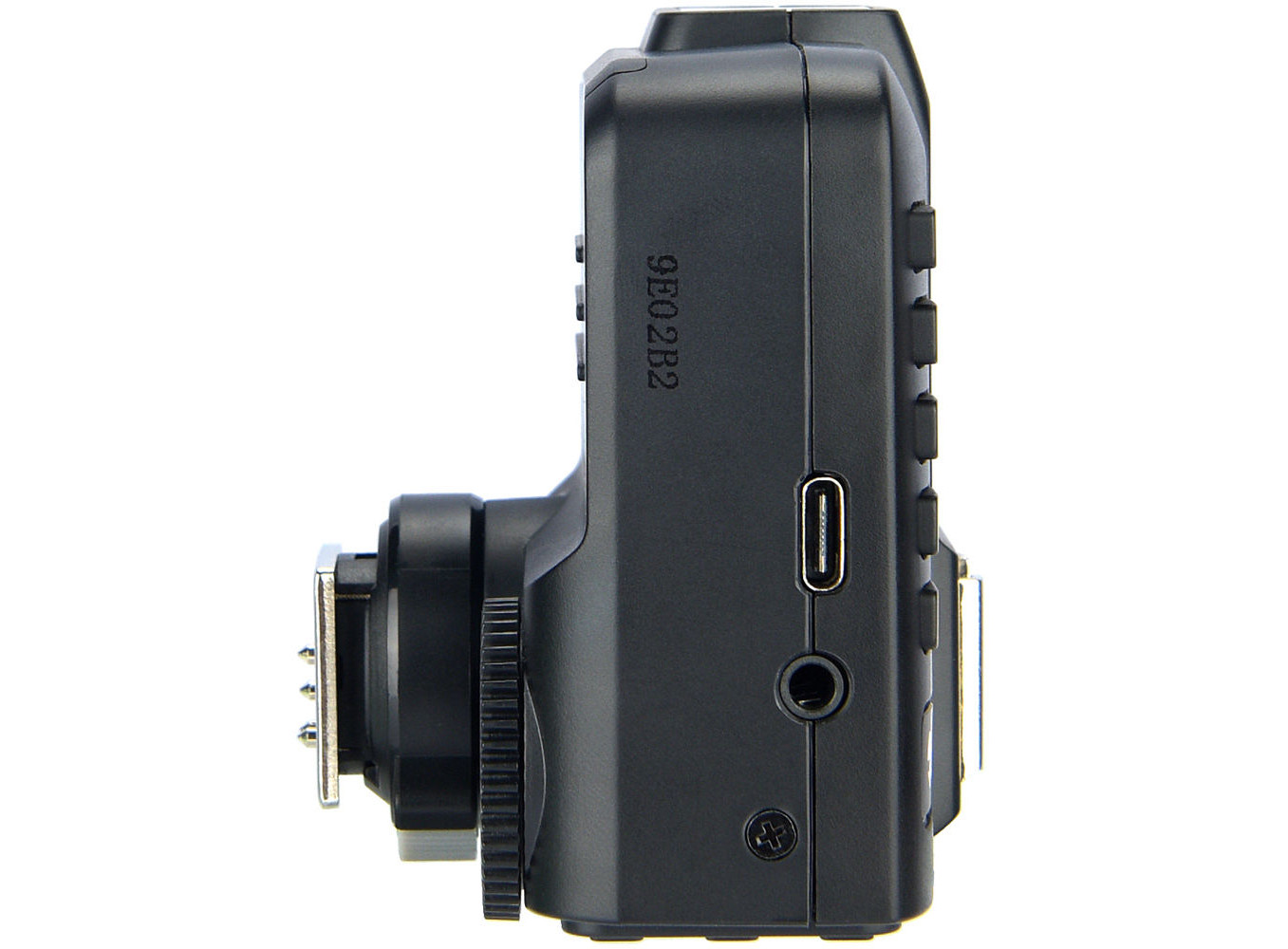 - Cổng USB Type-C đặt ở bên hông trigger để tải cập nhật phần mềm, cũng như là socket đồng bộ 3.5mm để kết nối các đèn flash không phải TTL hoặc để bấm máy ảnh thông qua dây điều khiển máy ảnh từ xa.