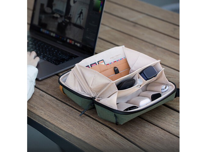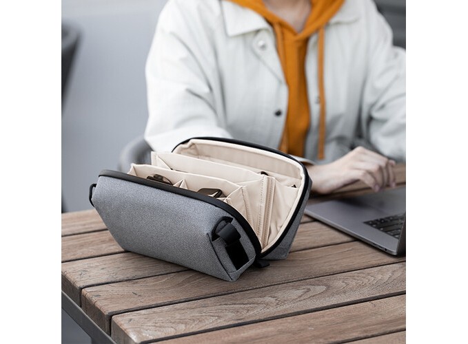 Túi đựng phụ kiện PGYTECH giúp bạn đựng và sắp xếp các phụ kiện công nghệ nhỏ gọn, dễ dàng lấy ra khi ở nhà hoặc khi di chuyển. Thiết kế dạng vỏ sò, có thể sử dụng ở cả vị trí đóng nửa kín và mở hoàn toàn. Nhiều ngăn bên trong và dây đeo phụ kiện đàn hồi giúp bạn đựng được nhiều loại sạc, cáp, tai nghe, sạc dự phòng, bút, pin. Vỏ ngoài chống thấm nước và có khóa kéo chắc chắn, lý tưởng cho việc di chuyển. Ngăn đựng AirTag bí mật giúp bạn yên tâm tìm lại túi đựng đồ khi bị thất lạc hoặc bị đánh cắp.