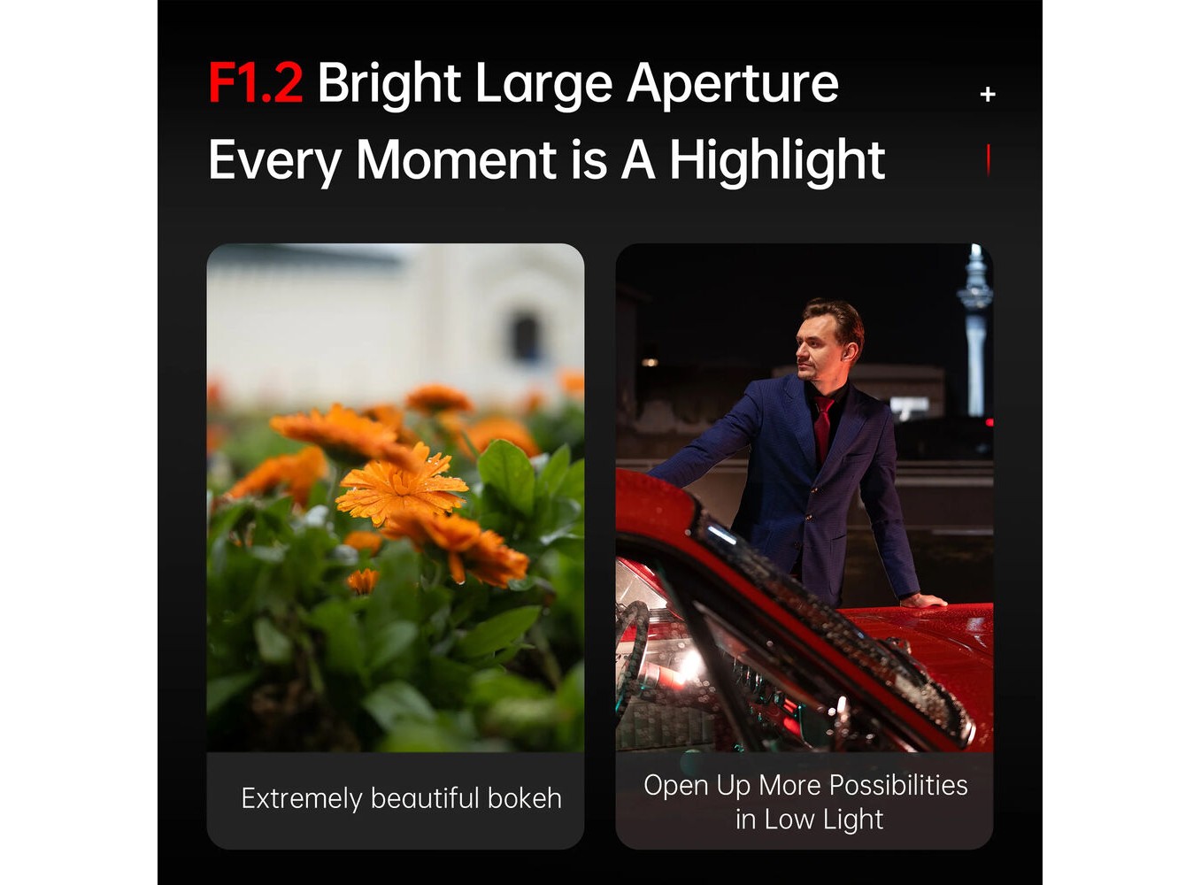 Khẩu độ tối đa f/1.2 sáng phù hợp làm việc trong điều kiện ánh sáng khó khăn và giúp duy trì hệ số dạng tương đối nhỏ gọn.